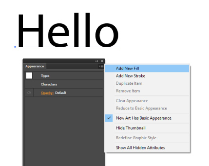 Open the Appearance window (Go to Window menu and Appearance). Click on the menu icon near the top right of the Appearance window and select Add New Fill.